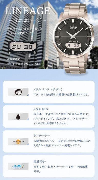 | フルメタルケースのソーラー電波時計「LINEAGE(リニエージ)」。 |