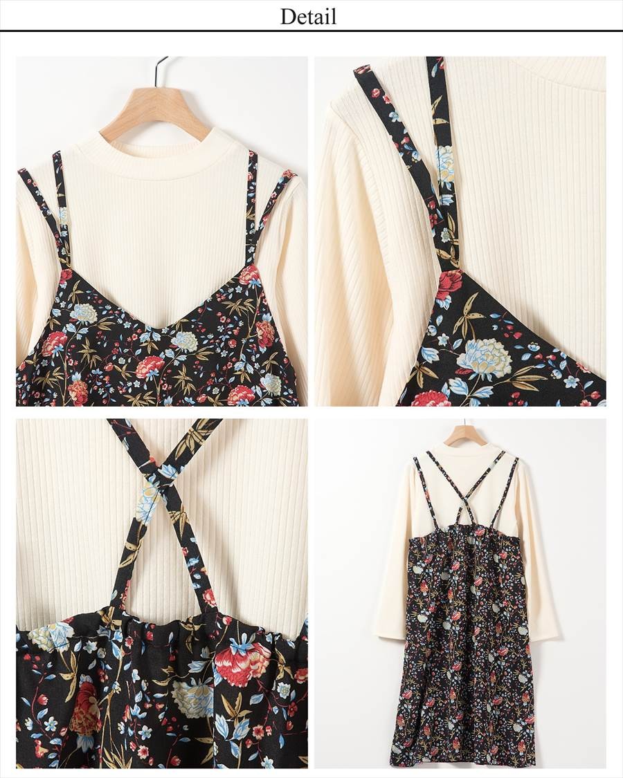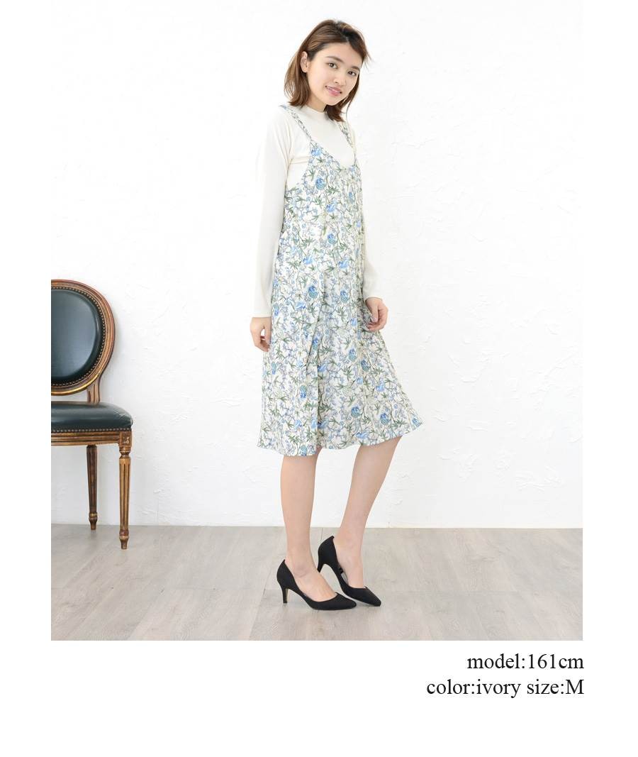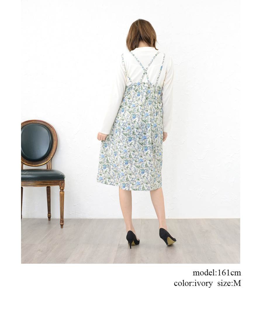 【ワンピース 花柄 キャミワンピ インナー付き フラワー レディース トップス 長袖 フルール柄 総柄 ボタニカル 薄手 春 大きいサイズ mitis】