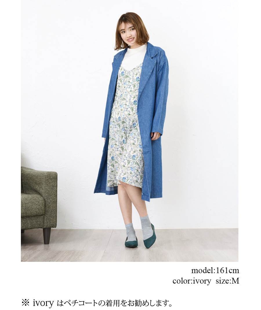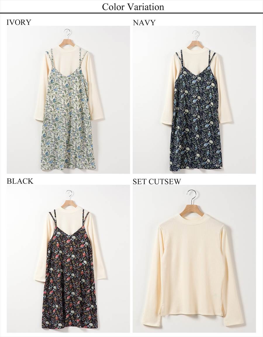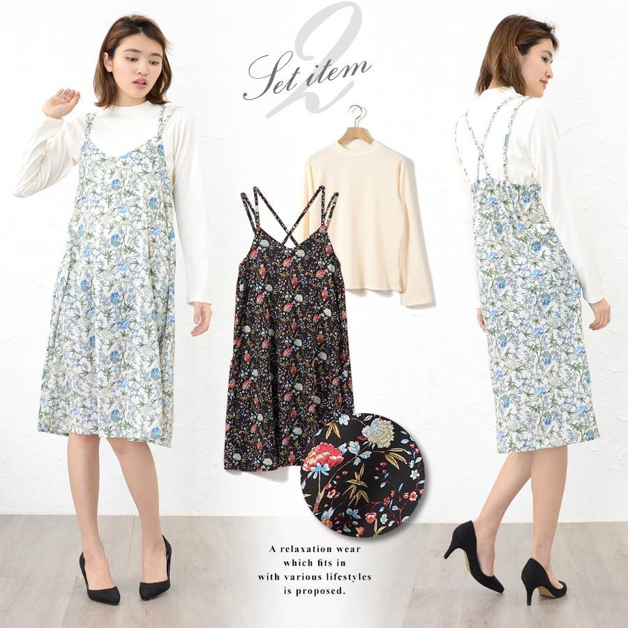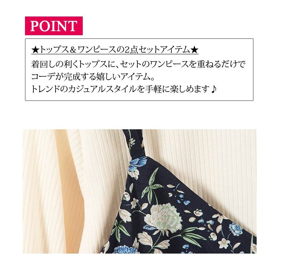【ワンピース 花柄 キャミワンピ インナー付き フラワー レディース トップス 長袖 フルール柄 総柄 ボタニカル 薄手 春 大きいサイズ mitis】