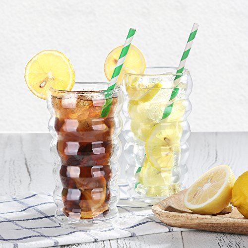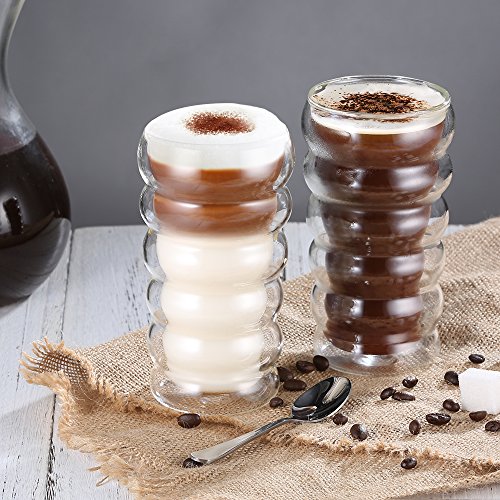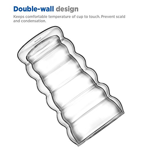 Elegant Look: Double wall and clear body create a floating illusion that makes your drinks more appealing. A perfect choice for coffee, tea, desserts and more.