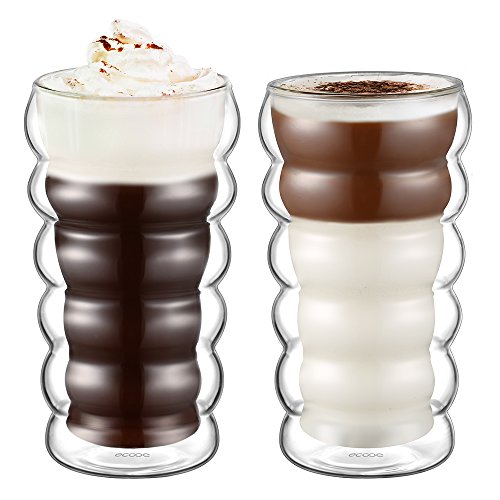 ECOOE DOUBLE WALL CUPS BEER\LATTE/CAPPUCCINO/MILK/JUICE GLASS CUPS 300ML/10.24OZ, SET OF 2