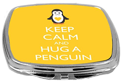 Rikki Knight Compact Mirror, Keep Calm and Hug a Penguin Yellow