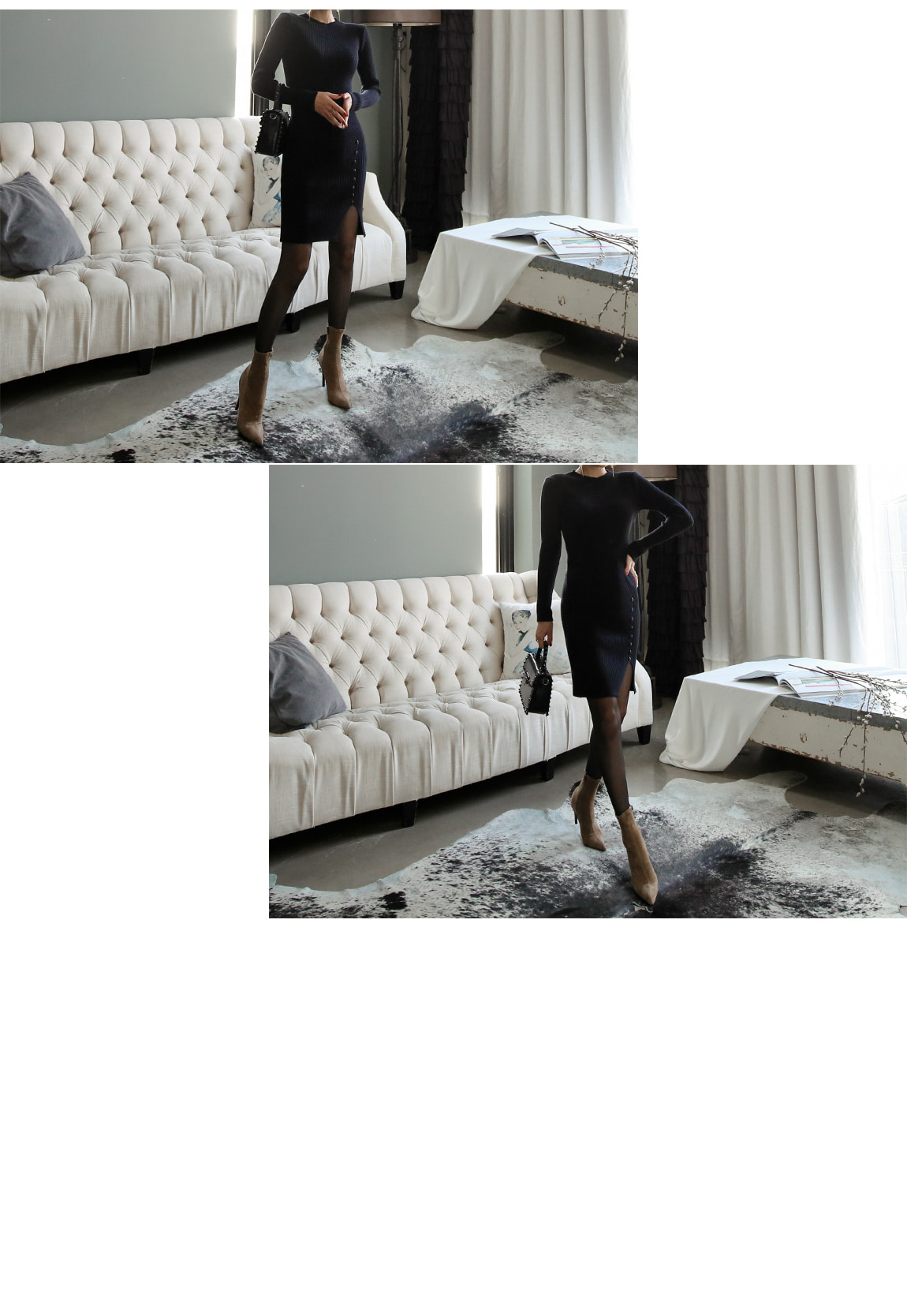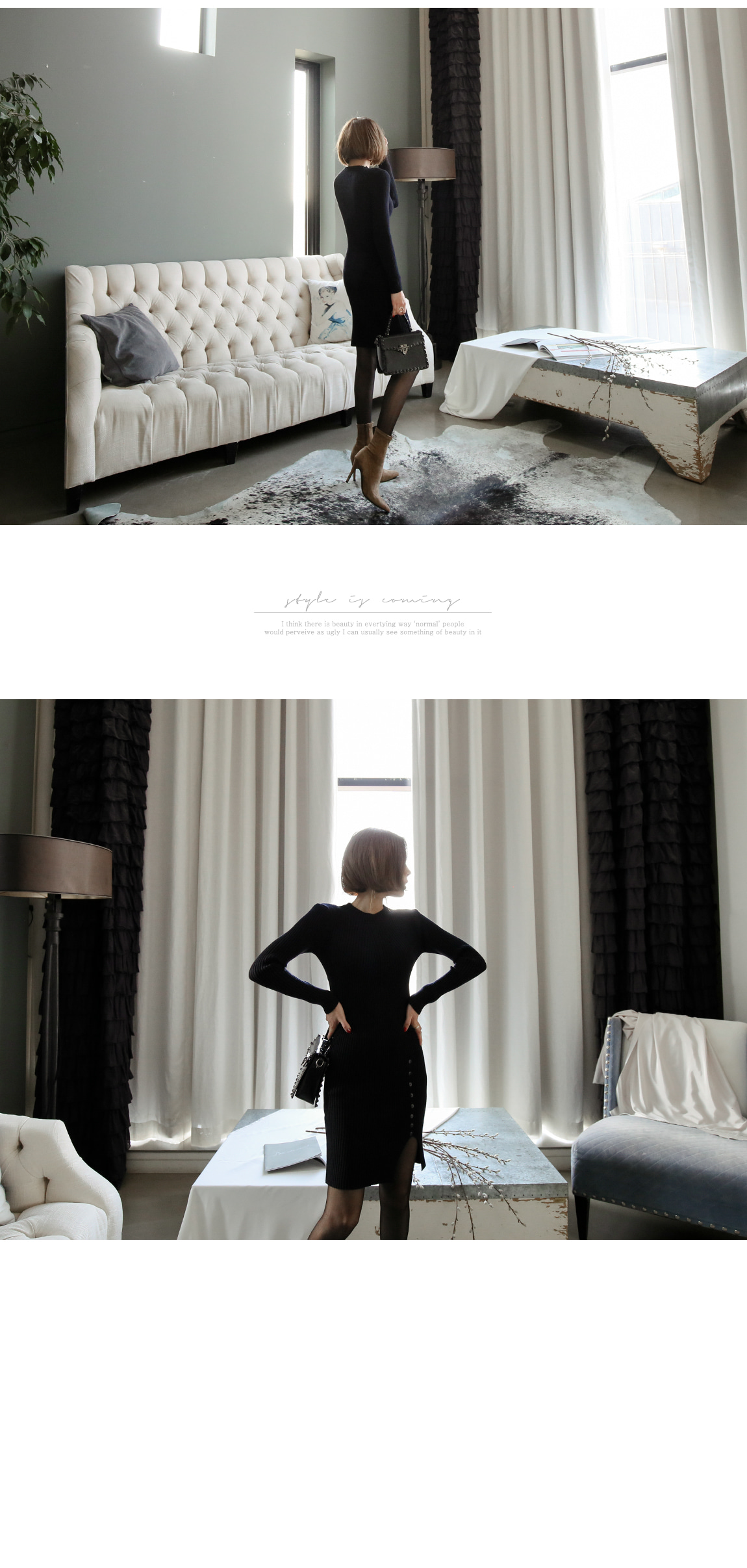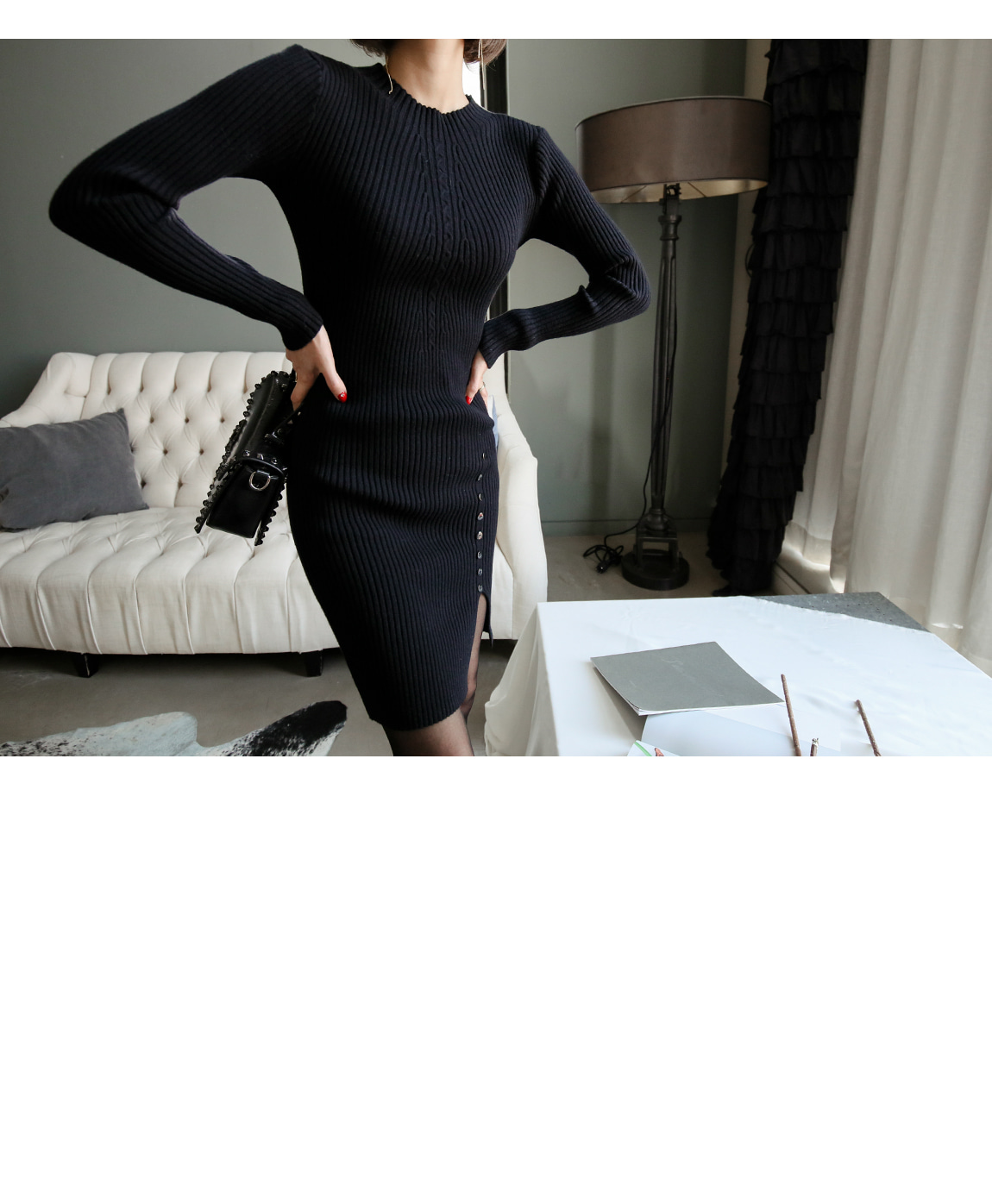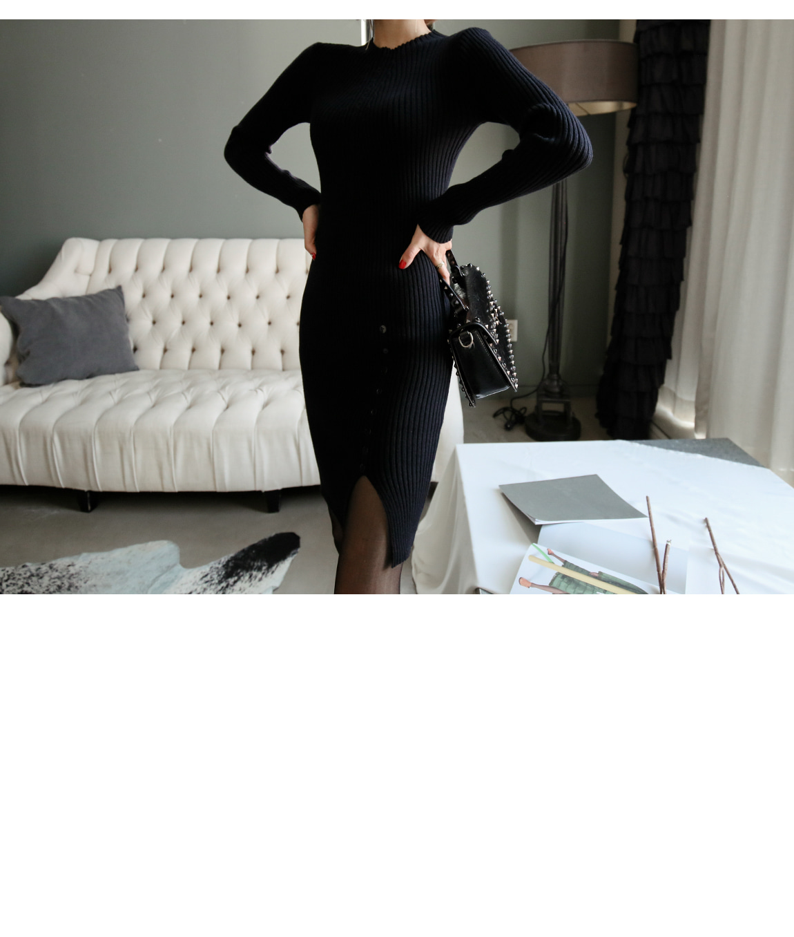 シンプルなデザインの裾ボタンでポイントを与え、