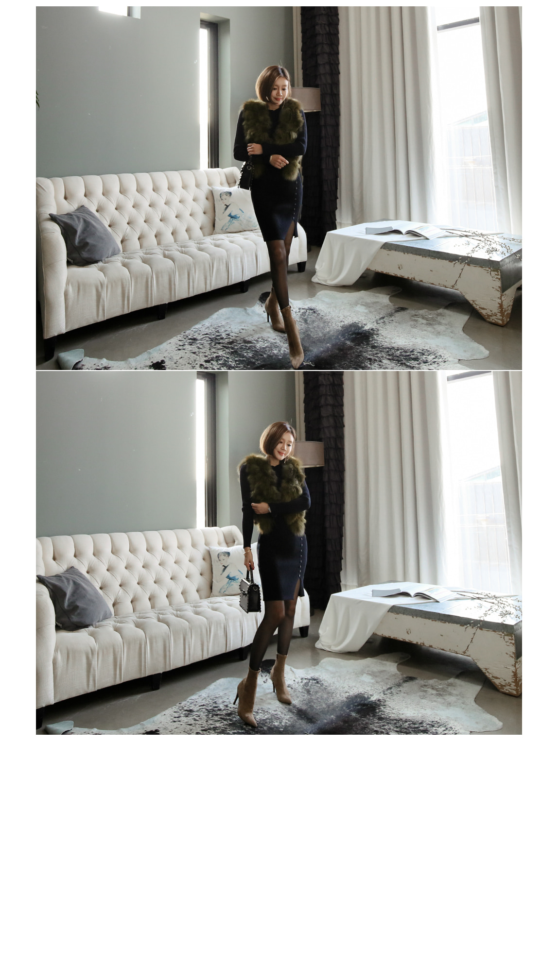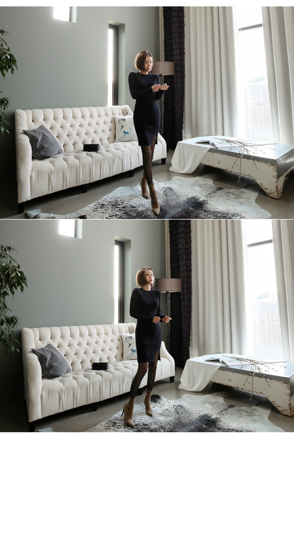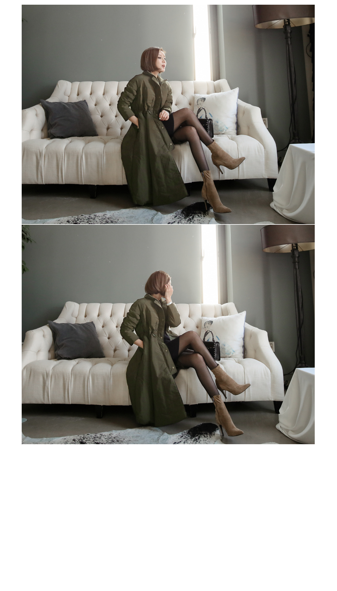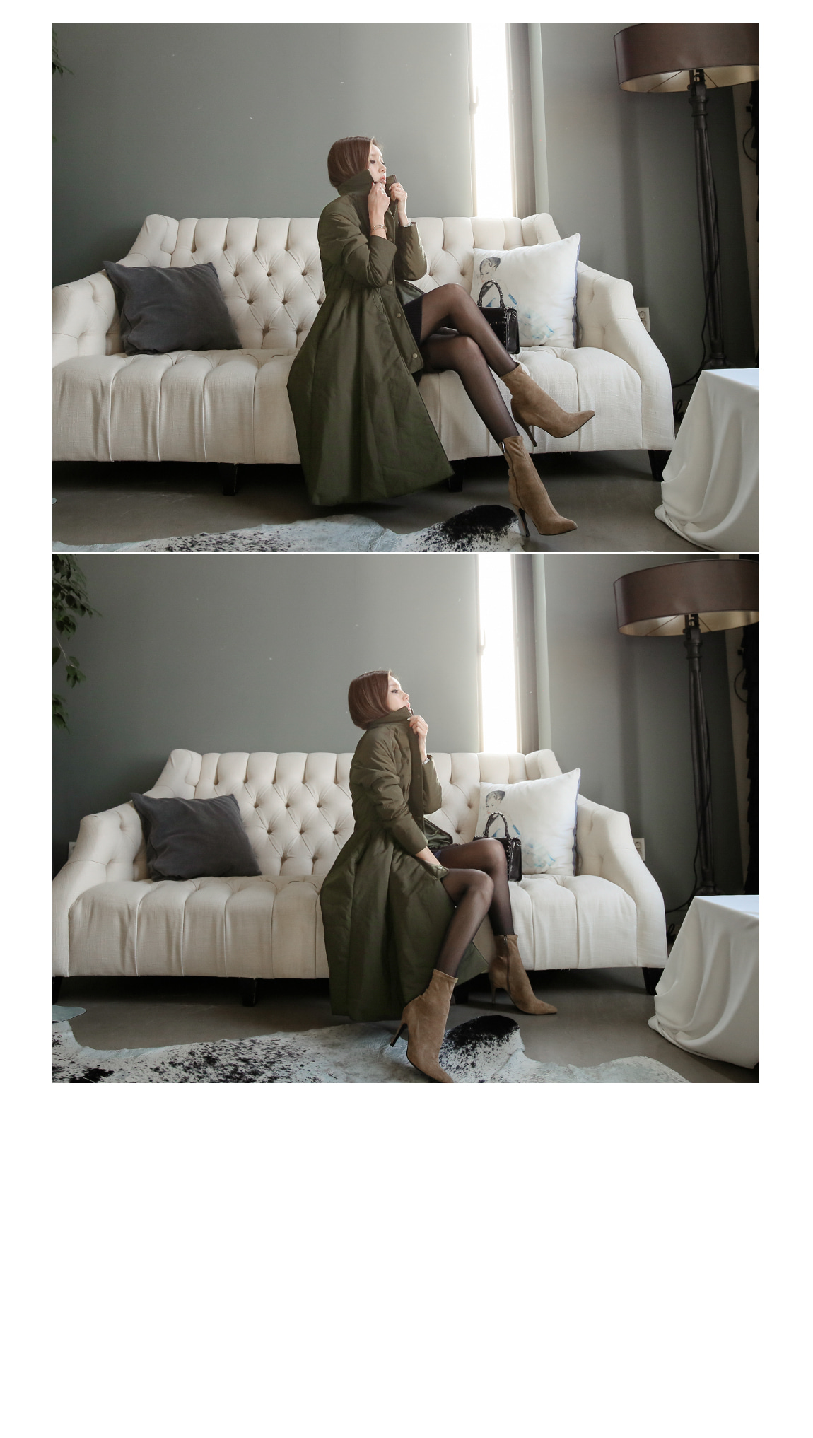 シンプルなデザインの裾ボタンでポイントを与え、