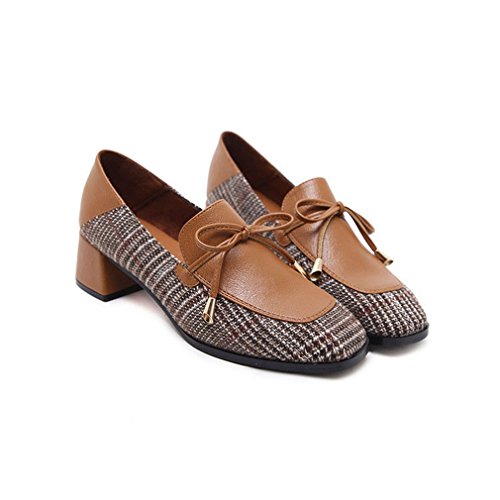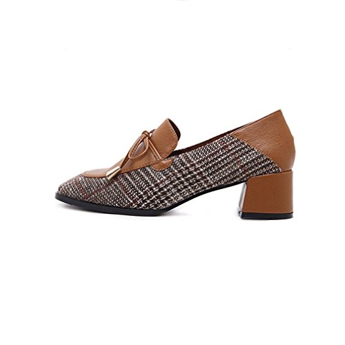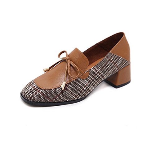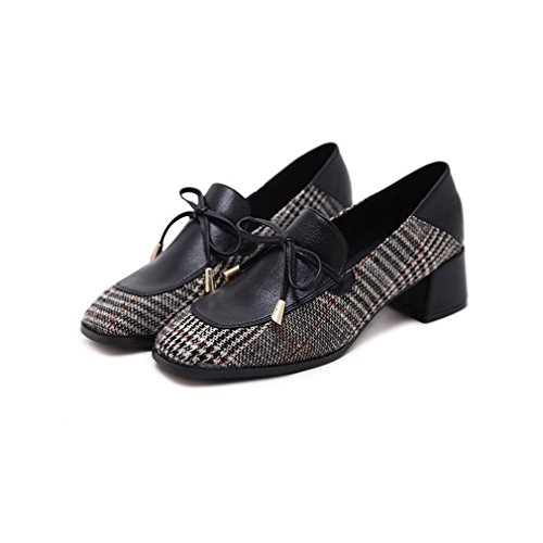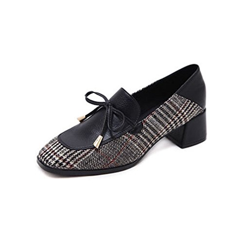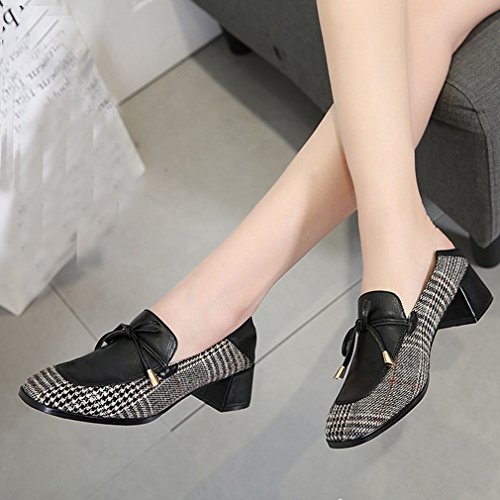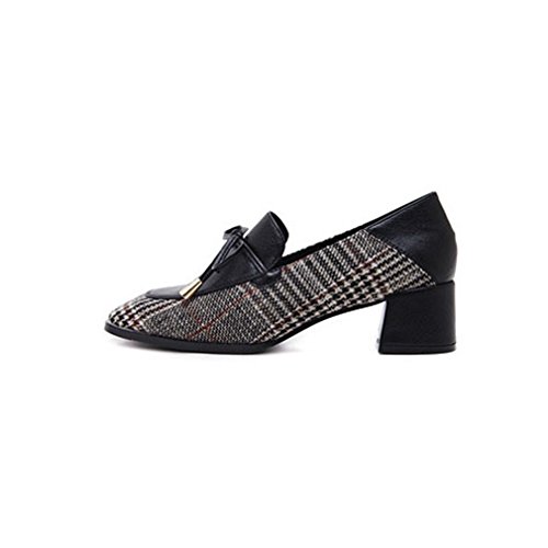 Product Description GIY Women's fashion classic pumps loafer, business square toe tassel grid comfort slip on block heel Penny loafer, High quality and durable rubber sole, these fashion casual loafers shoes is great for wearing to work or dressing up an outfit for a day and night out. features cushion soft technology for added comfort. 0