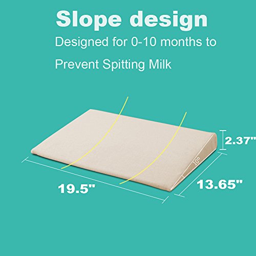 Studio : WSDCo.,ltd Publisher : WSDCo.,ltd Binding : Baby Product Product Description Product Specificatons: Material:100% pure premium quality memory foam. Material of Cover: 100% Cotton cover. Weight:1.5pounds for the set Size: 19.5"x13.65"x2.37" 10 degree incline angle is recommended by pediatricians for newborns,help to elevate your baby head and torso,reduces acid reflux and spitt-up,the raised place make them sleep soundly.Our incline crib wedge can be placed under the bedding mattress which raises the angle of your baby's head to allow baby to rest in an optimal place. Never again will you have to worry about the danger of your baby getting choked while asleep due to wrong way. Fits most of cribs and toddler beds, and can be used boppy lounger, floor mat, co-sleeper. Please see the size before you order the baby crib wedge pillow. Care Instructions Inner cover -Wipe clean with soapy warm water Removable outer cotton cover - Machine wash gentle cycle in cold water and air dry (to prevent shrinking)