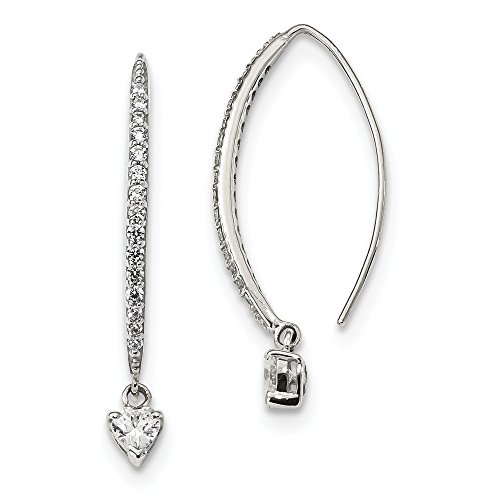 Solid 925 Sterling Silver Heart CZ Cubic Zirconia Threader Earrings (4.8mm x 38mm)