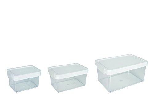 Click Clack Kitchen Essentials Storage Containers with White Lids, 0.45-Quart, 1-Quart and 2-Quart, Set of 3