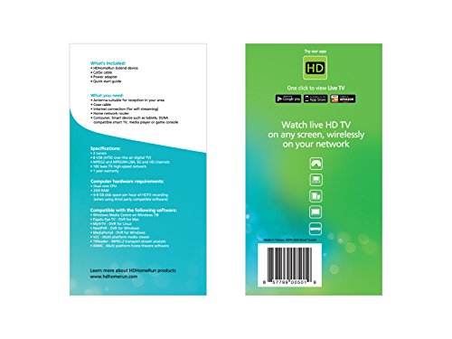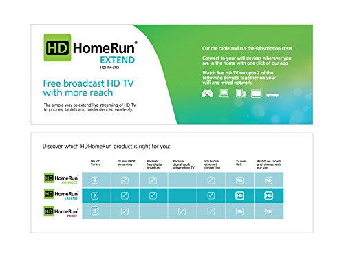 HDHomeRun PLUS Branded ATSC Dual Tuner with Hardware Transcode To H.264 AVC. HDHomeRun is a network-attached TV tuner allowing you to stream free broadcast TV throughout your home. Watch live TV on your tablet smartphone smart TV PC or media player. Watch live TV on DLNA-compatible devices including: Smart TVs Tablets (iPads & Android) Smart Phones (iPhones & Android) Game Consoles and Blu-ray Players / Media Players. Up to 1080 HDTV HD HomeRun receives the high-quality 720/1080 broadcasts and converts them to H.264 format for more efficient streaming over your network. Use an antenna to pick up the FREE broadcast digital TV (ATSC) available in your area ABC CBS FOX NBC PBS and other networks. The InstaTV Pro app supports direct streaming from HDHomeRun Plus devices and is available for iOS Android and Windows 8.1 (x86/x64/ARM).Feature