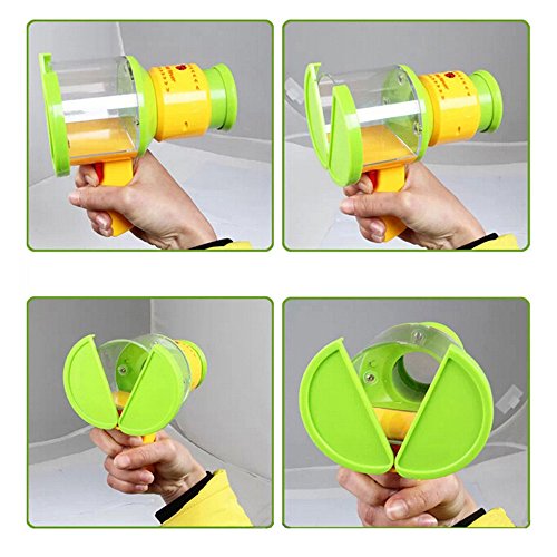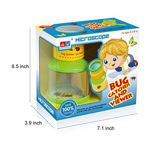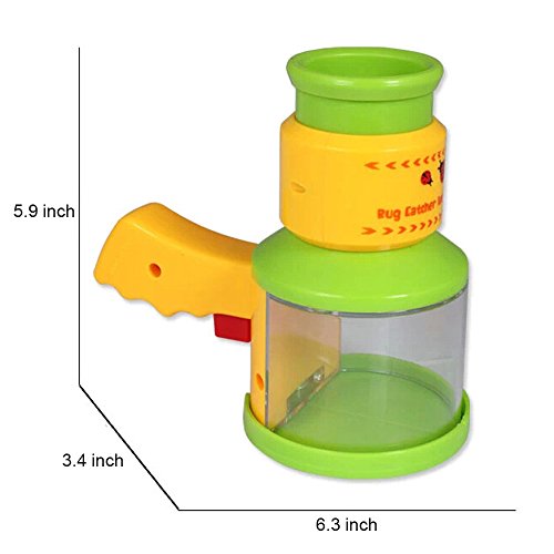 -. Feature : 100% Safe: made of eco-friendly ABS ,non toxic, measures 6.3"x3.4"x5.9". / Perfect Design:designed with microscope and handle, bright colored,which is cheerful and attractive to your kids. / Easy to Use: press the red button below the handle to open the lid and catch bugs;Rotate the yellow part to adjust the focus and observe bugs. / Natural Exploration: encourage your kids to explore the nature to learn more about science, and the amazing miniature world. / Hurtless: Set the bugs free when finished observing.