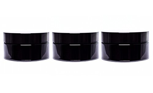 ultravioLeaf 50 ml (1.7 fl oz - Eighth Oz) Cosmetic Style Travel Size Black Ultraviolet Glass Screw Top Jar | Airtight Stash Container 3-Pack