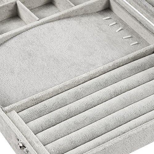 - STURDY AND SOFT TO THE TOUCH: Made using medium density fiberboard for the exterior and soft velvet lining for the interior, this jewelry display case is reliable and decorative in equal measure.