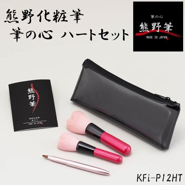 | 筆司の手作り極上品質化粧筆。穂先をカットしない熊野の化粧筆は、穂先がやわらかくやさしいので肌触りが違います。かわいいピンクハートのフェイスブラシとチークブラシ、そしてリップブラシのセットです。収納ケース付き。 |