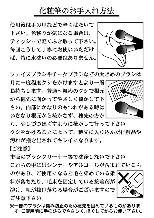 | 仕様 | フェイスブラシ:全長約12.7cm、毛丈約4cm チークブラシ:全長約11cm、毛丈約3.5cm リップブラシ:全長約11.7cm、毛丈約1cm 収納ケース:約7.8×19.2×1.8cm |