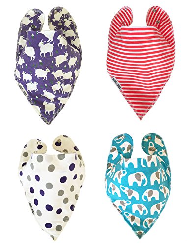 -. Feature : THE SOFTEST AND MOST ABSORBENT100% ORGANIC COTTON DROOL BIBS - NO MORE STAINED CLOTHES! Best Absorbency - Front material is 100% high quality organic cotton. Back is polyester fleece for high absorbency. Keeps baby dry from teething, drool, burp, and spit ups. These drool bibs were designed by mothers for their own babies. They are yummy soft and extremely comfortable. 4 bibs included in a uniquely designed cotton bag / CERTIFIED BY GOTS - 100% NATURAL, DYE FREE, AND CHEMICAL FREE, COLORED ORGANIC COTTON. DESIGNED IN CALIFORNIA - Unique adorable designs created by mothers and responsibly made in India. • / PERFECT BABY SHOWER GIFT SET - Popular, Useful, and Stylish. Set of 4 bibs comes in our originally designed bag. Great for shower/baby gifts for family and friends. / ADJUSTABLE SNAPS - 2 quality snaps provide different size adjustments to accommodate growing babies and toddlers. Snap closures secures bib from falling off while allowing for a safe and gentle removal with a tug. Fits most babies from 3 to 24 months. / 100% CUSTOMER SATISFACTION GUARANTEED - If not satisfied for any reason, return it within 30 days and we will either replace it or refund your money. No questions asked.