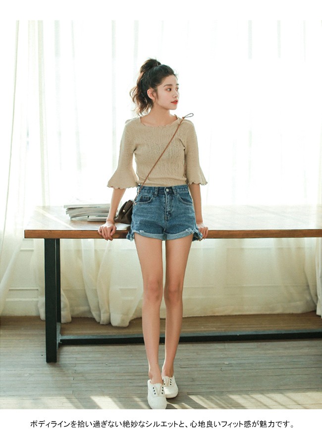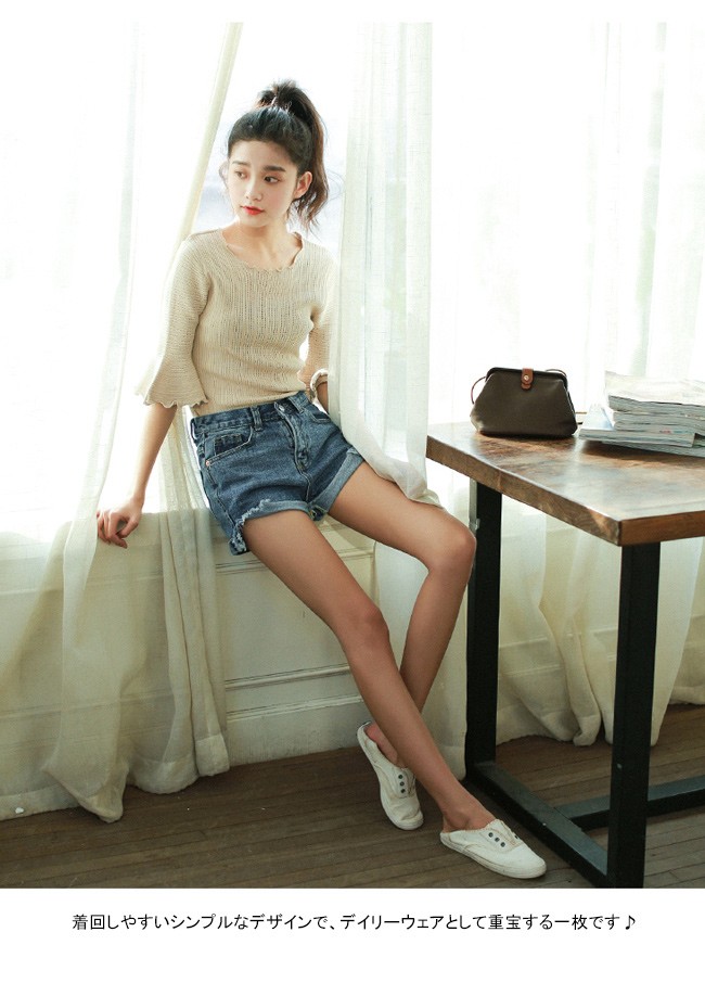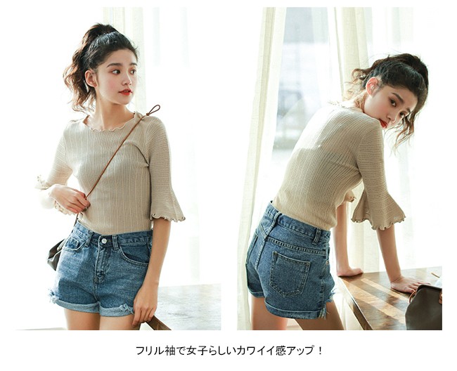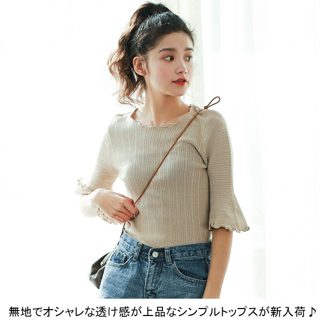 | 商品名 | ニットシャツ トップス インナー レディース シンプル 無地 スカラップネック 丸襟 五分袖 フリル 大人 春 夏 新作 通勤 お呼ばれ 結婚式 |