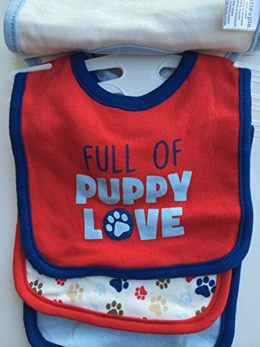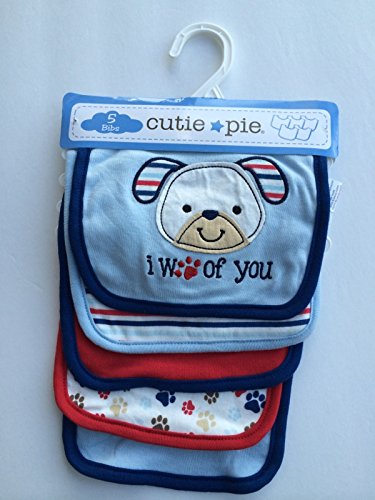 -. Title : 5pk Cutie Pie Velcro Closure Bib Blue/Red puppy love