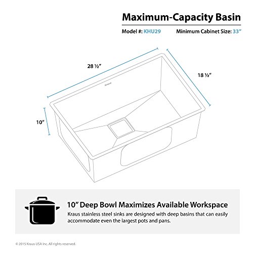 Kraus KHU29 Pax Zero-Radius 28 1/2" 16 Gauge Handmade Undermount Single Bowl Stainless Steel Kitchen Sink