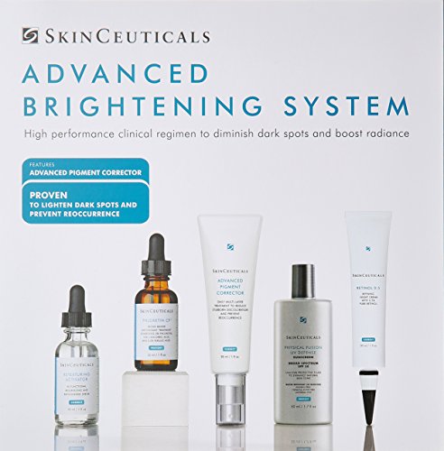The SkinCeuticals Advanced Brightening System is a five product system clinically proven to significantly lighten dark spots, dramatically brighten and even-out skin tone, minimize the appearance of fine lines and wrinkles, and help improve overall skin health.Feature