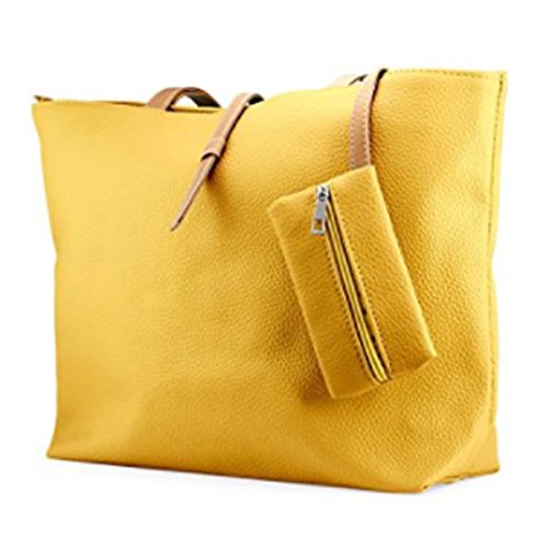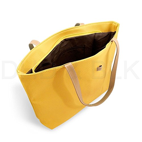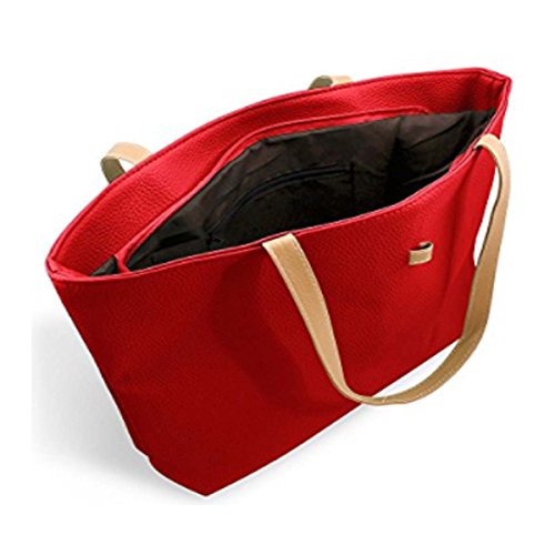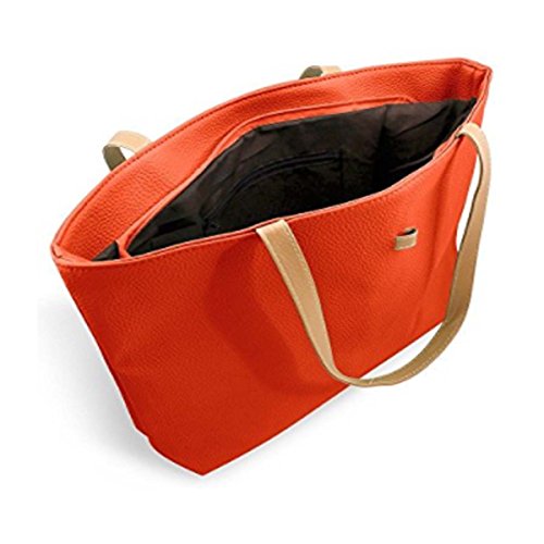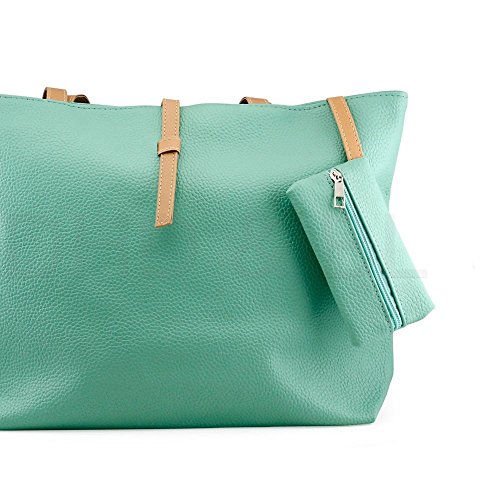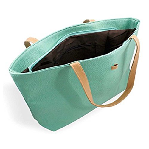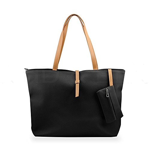 Product Description This tote bag is made of premium quality Faux Leather. This bag is perfect choice for those girls and women for all ages. It has a one main compartment which measures about 17 inch by 10.5 inch. This main compartment can be open and closed with zip. Inside this main compartment there are two more compartments. One is fixed zip compartment and other one is pouch secured by zipper also. This size of this zipper pouch is 3.5 x 5 inch. This feature gives added benefit and security to ladies to hold additional small valuable items and which are easily accessible also. 0