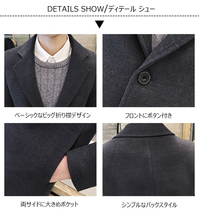 | 商品名 | チェスターコート メンズコート ジャケット ピーコート ダッフルコート 秋冬コート 秋冬アウター メンズ ラシャアウター 無地 折り襟 カジュアル 2017秋冬新作 |
