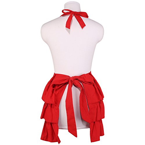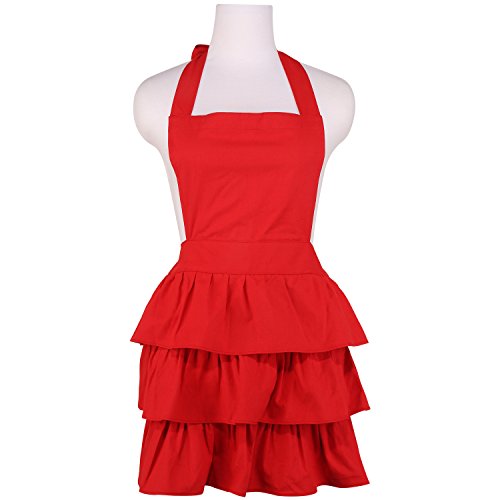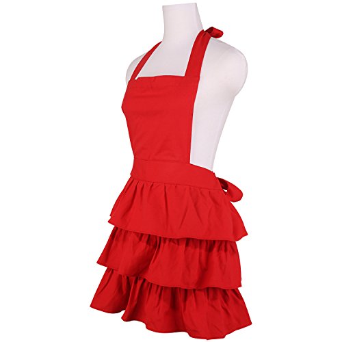 Neoviva Cotton Canvas Cooking Apron for Women with Ruffles, Solid Wine Red