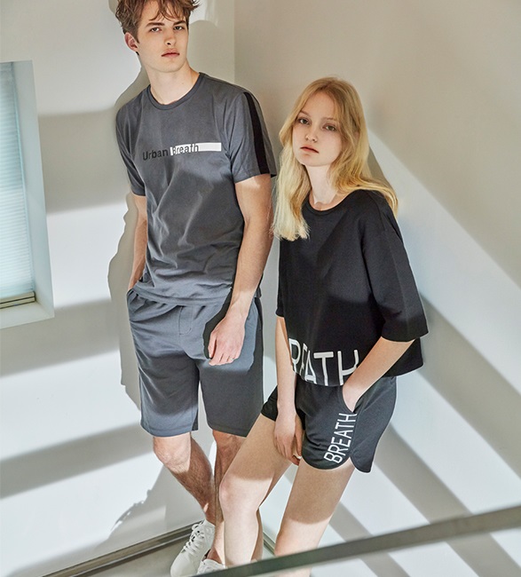 남성 기본핏 어깨배색 레터링 트레이닝 2종세트입니다.얇고 부드러운 면소재로 반팔티셔츠와 5부바지가 한세트로 3가지 색상입니다.