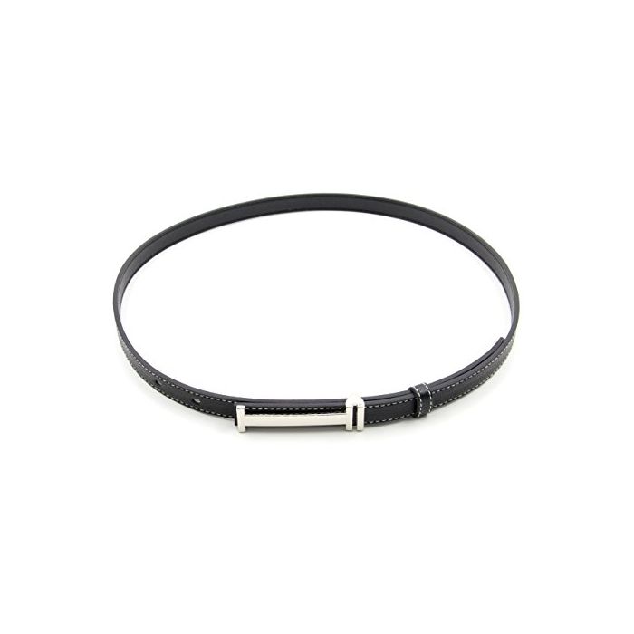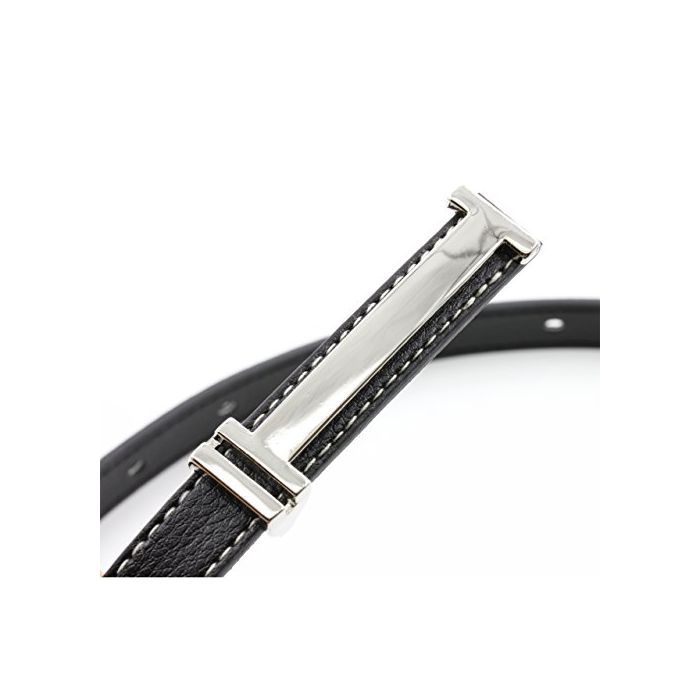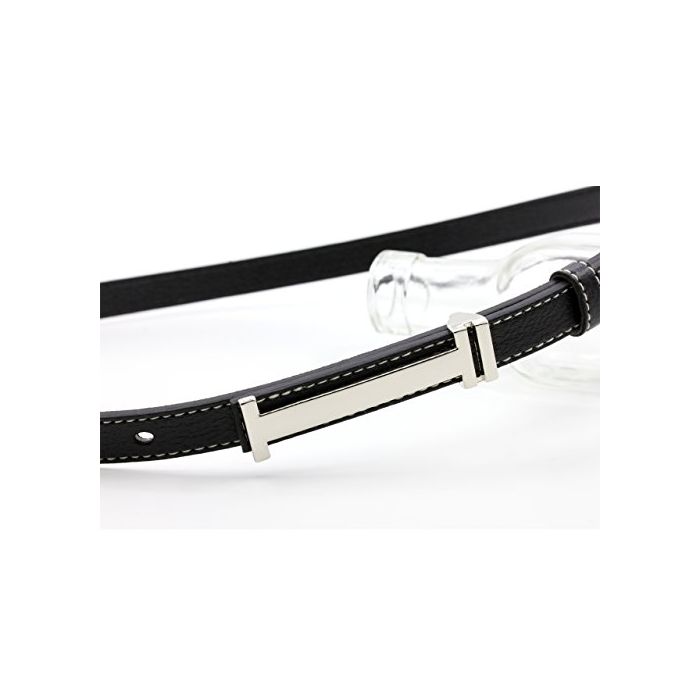 원본상품명: バックル 細 ベルト レディス 大人 かわいい 細幅 シルバ ステンレス PU 合皮 レザ H 型 ステッチ (ブラック)