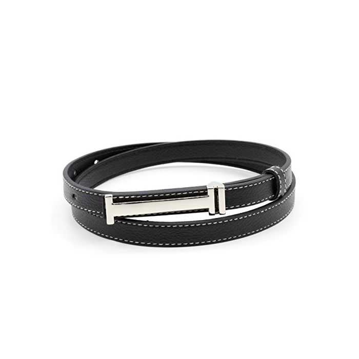 Siennar 버클 세 벨트 레이디스 어른 귀여운 세폭 실버 스테인레스 PU 합가죽 페이크 레더 스타일리시 웨스트 밴드 H 타입 스텟치 (블랙)