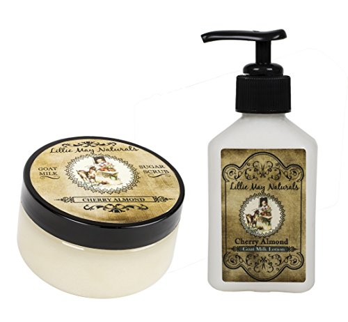 Lillie May Naturals Exfoliating Cherry Almond Goat Milk Body Scrub and Lotion Gift Set