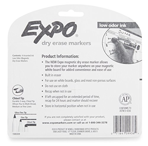- Title : Expo Magnetic Dry Erase Markers with Eraser, Chisel Tip, Assorted, 4-Pack (1944730)