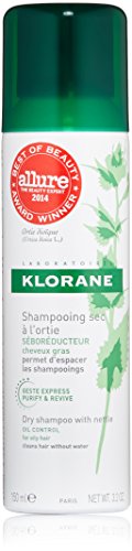 -. Binding : Health and Beauty -. Brand : Klorane -. EAN : 3282779008686 -. Feature : For oil control / oily hair / 3.2 oz. / 150 ml aerosol / Proven effectiveness: KLORANE Dry seboregulating shampoo with nettle extract was appreciated by 86% of users for its ability to regulate sebum secretion on the scalp. / Free of parabens, sulfates, and colorants / Application: Shake well before use then uniformly spray a small amount over the hair at a distance of 12 inches. Leave for 2 minutes then brush thoroughly to remove all traces of powder residue. Avoid inhalation and contact with the eyes. KLORANE Dry seboregulating shampoo with nettle extract can be used as frequently as necessary. -. HazardousMaterialType : Unknown -. IsAdultProduct : 0 -. Label : Klorane -. Manufacturer : Klorane -. Model : 4117 -. MPN : C48699 -. NumberOfItems : 1 -. PackageQuantity : 1 -. PartNumber : C48699 -. ProductGroup : Prestige Beauty -. ProductTypeName : LUXURY_BEAUTY -. PublicationDate : 2014-08-02 -. Publisher : Klorane -. ReleaseDate : 2016-05-31 -. Size : 3.2 oz. -. Studio : Klorane -. Title : Klorane Dry Shampoo with Nettle - Oily Hair , 3.2 oz. -. UPC : 709102077261