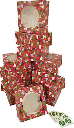 (Kraft King)/Kitchen Dining/Cookware Baking/DIRECT FROM USA/Cookie gift boxes, foldable with stickers for sealing, st of 12 boxes (Colorful Trees)
