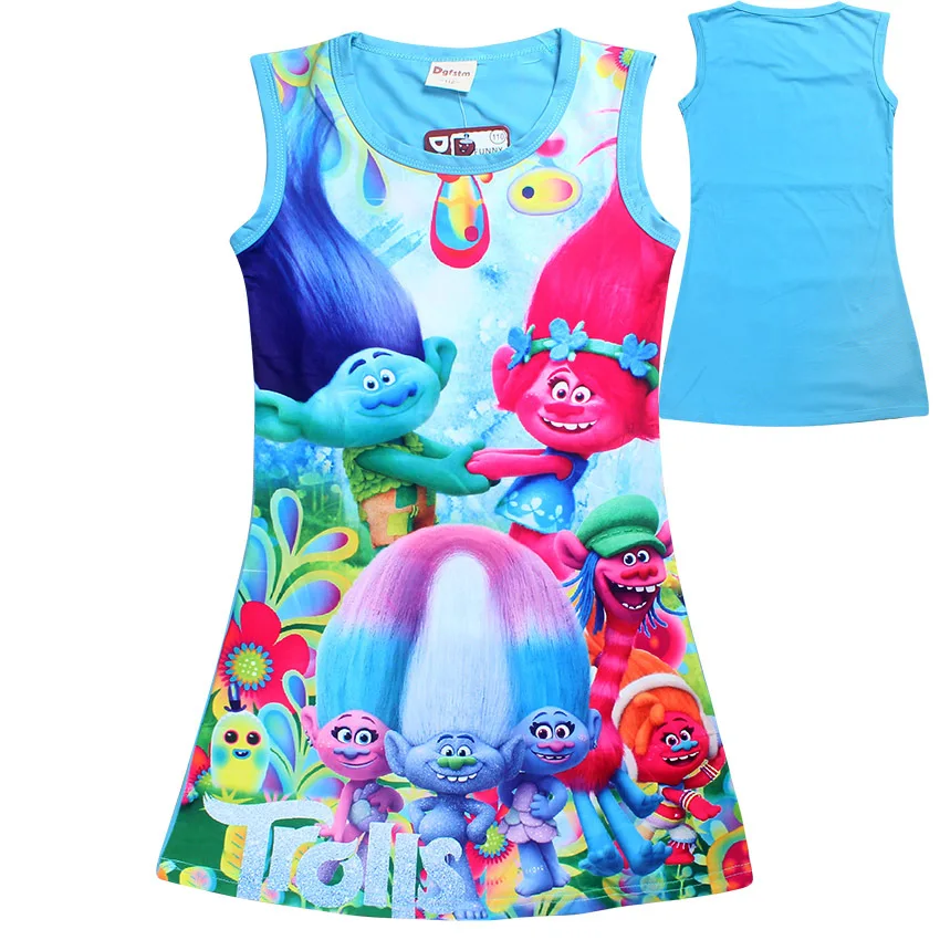 Girls TROLLS Dress Print Imitation Girl Tank Party moana Dress White Red Blue Color Children Clothing Children moanna Dresses