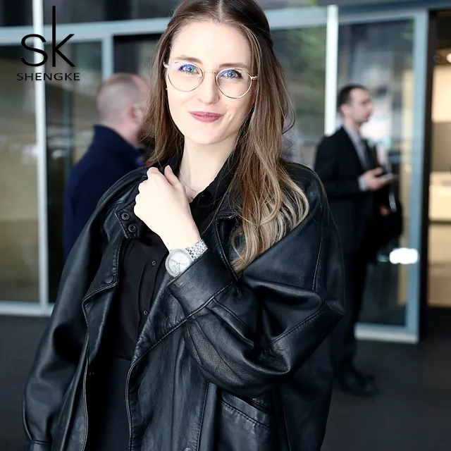 | [해외] Shengke 고급 여성 시계 브랜드 크리스탈 은색 다이얼 패션 디자인 팔찌 시계 숙녀 Womenwrist 시계 Relogio Feminino |