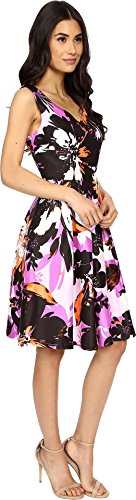 London Times Women's Opaque Bloom V Neck Fit and Flare Dress