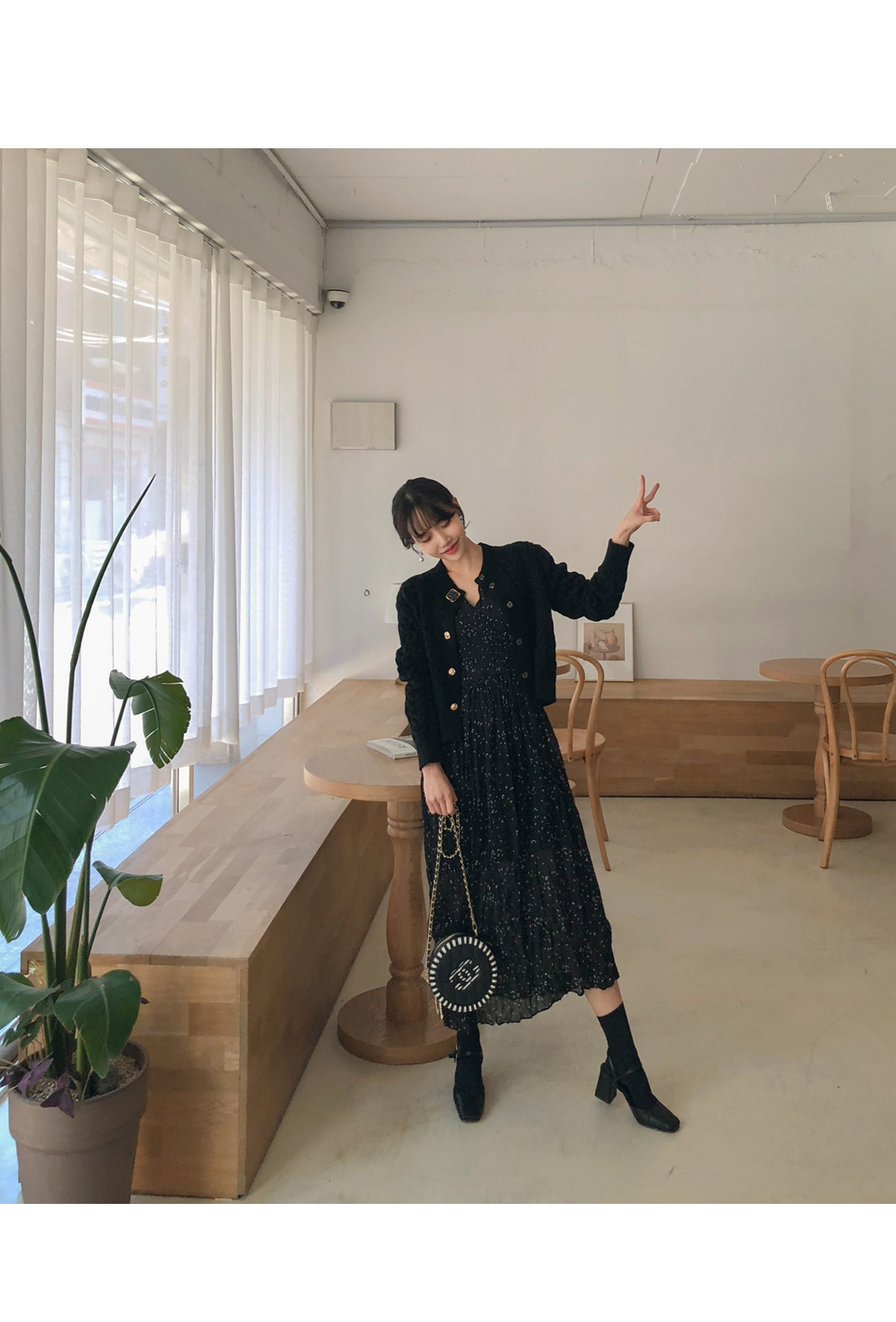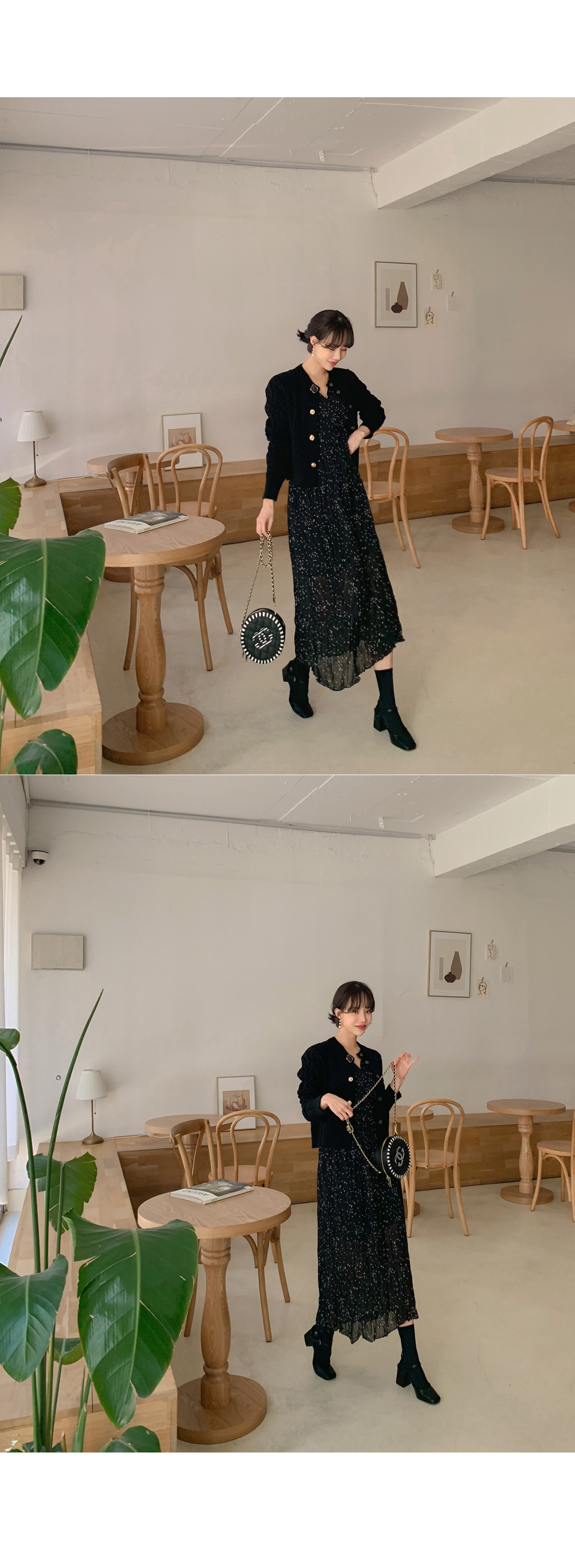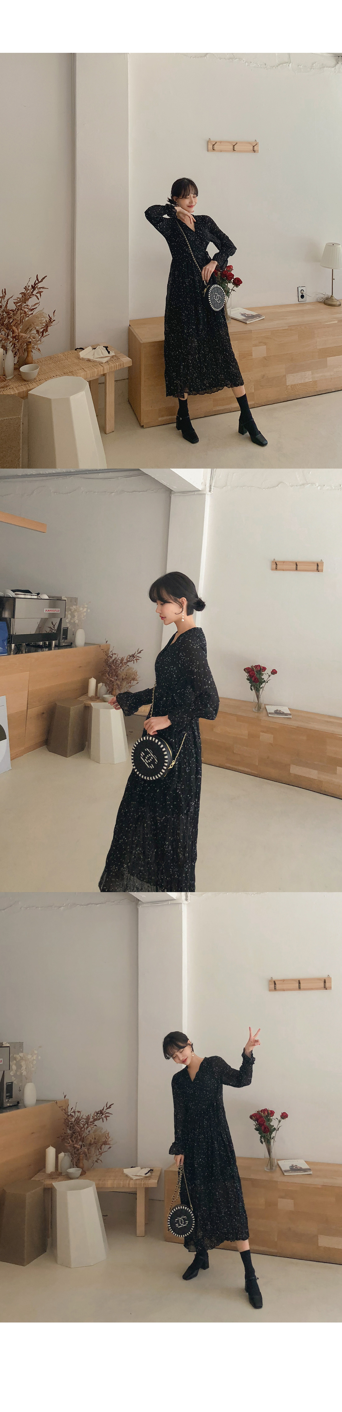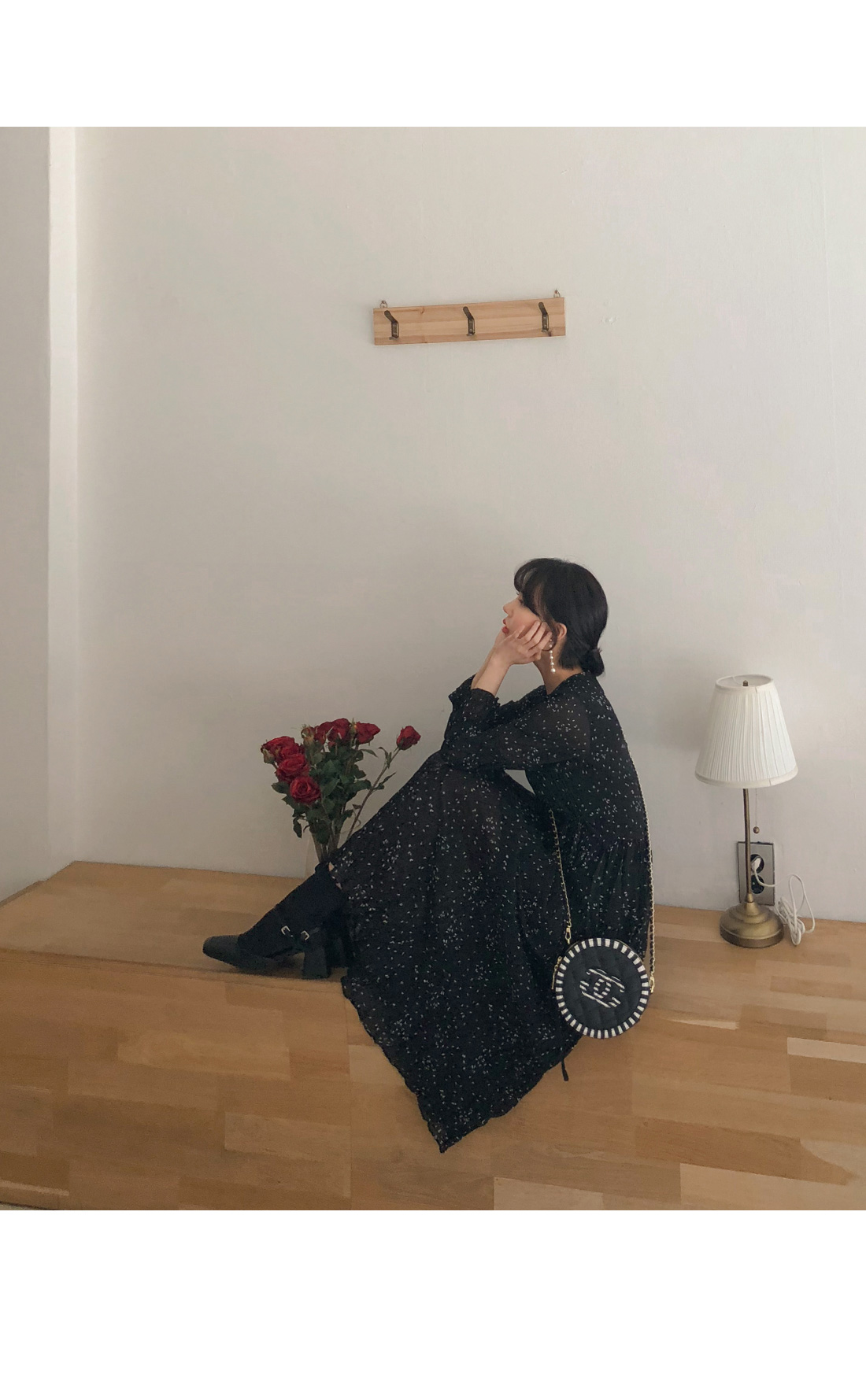 전체적으로 들어간 도트패턴원단에 주름으로 밋밋함을 덜어주면서