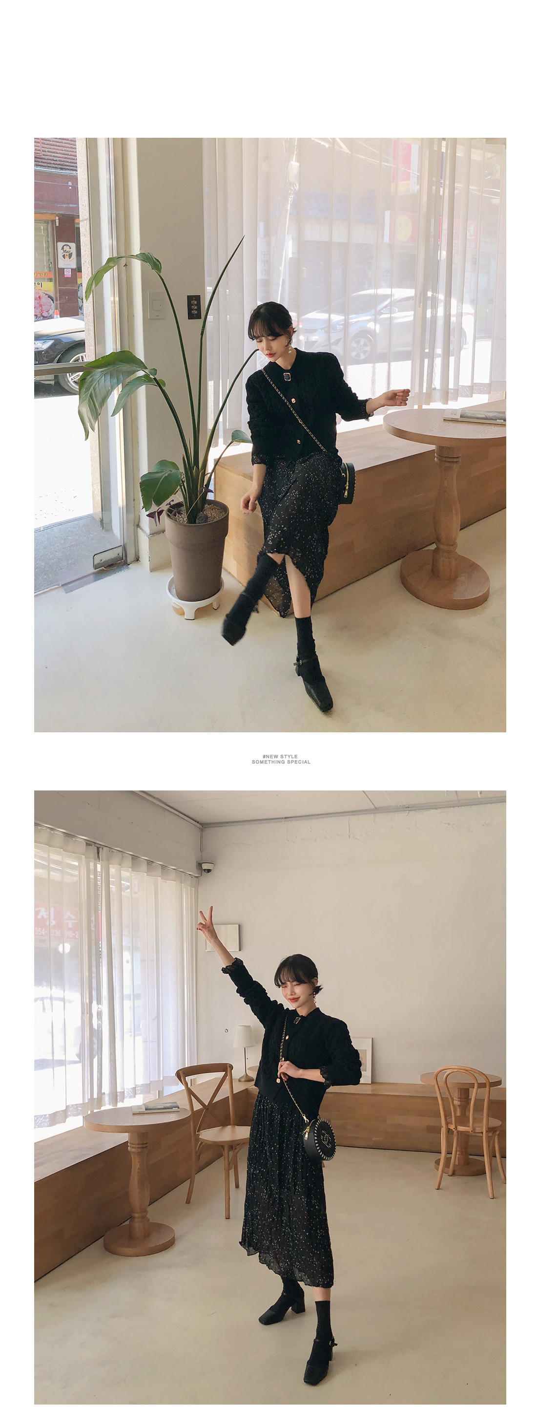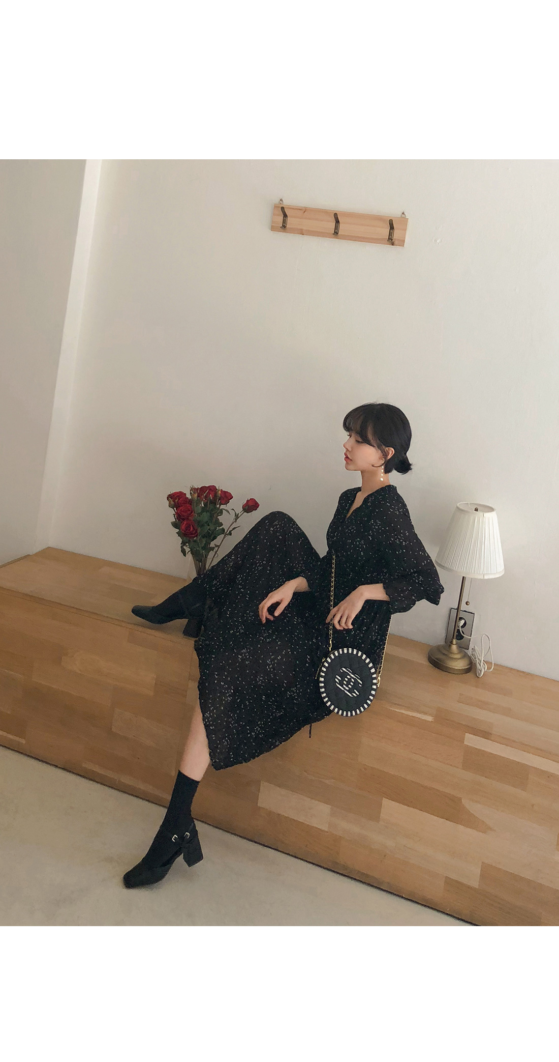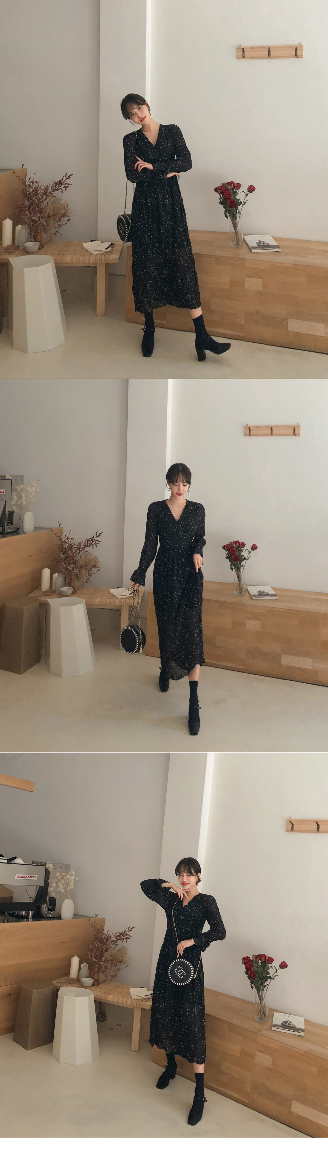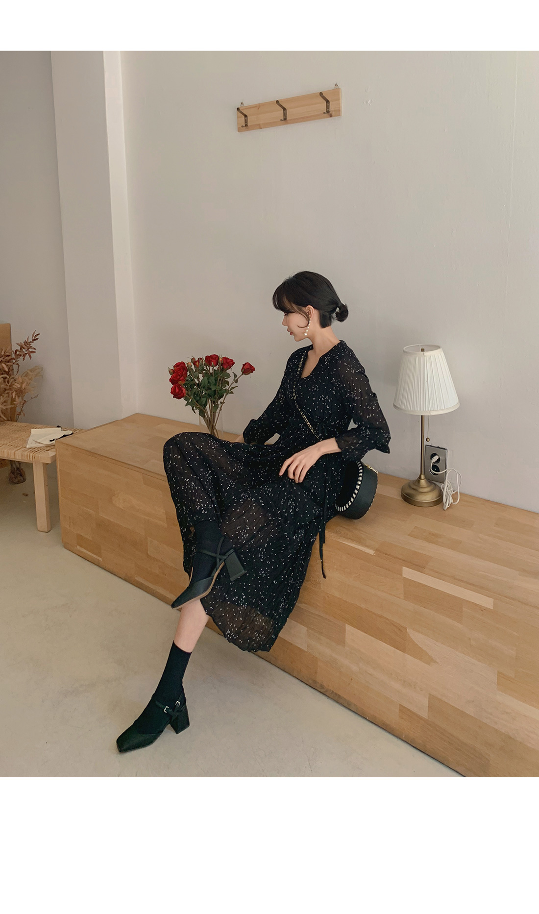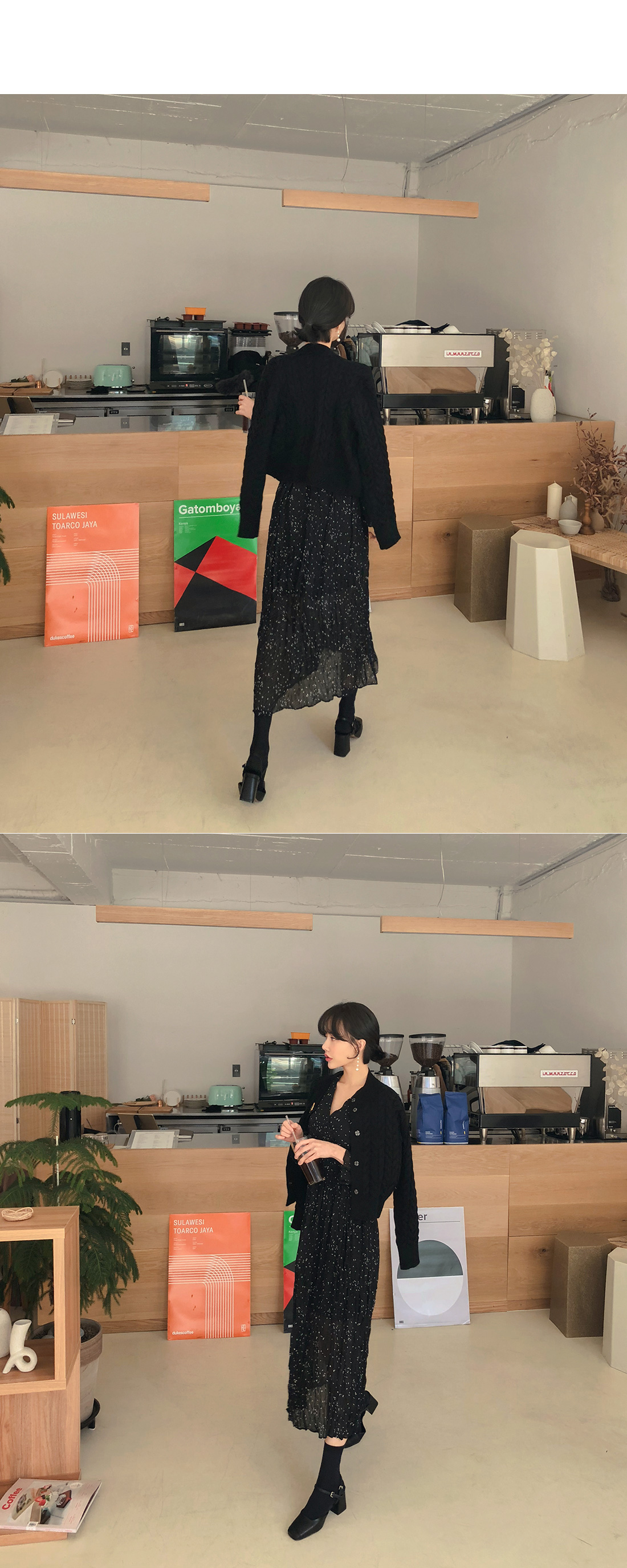 전체적으로 들어간 도트패턴원단에 주름으로 밋밋함을 덜어주면서