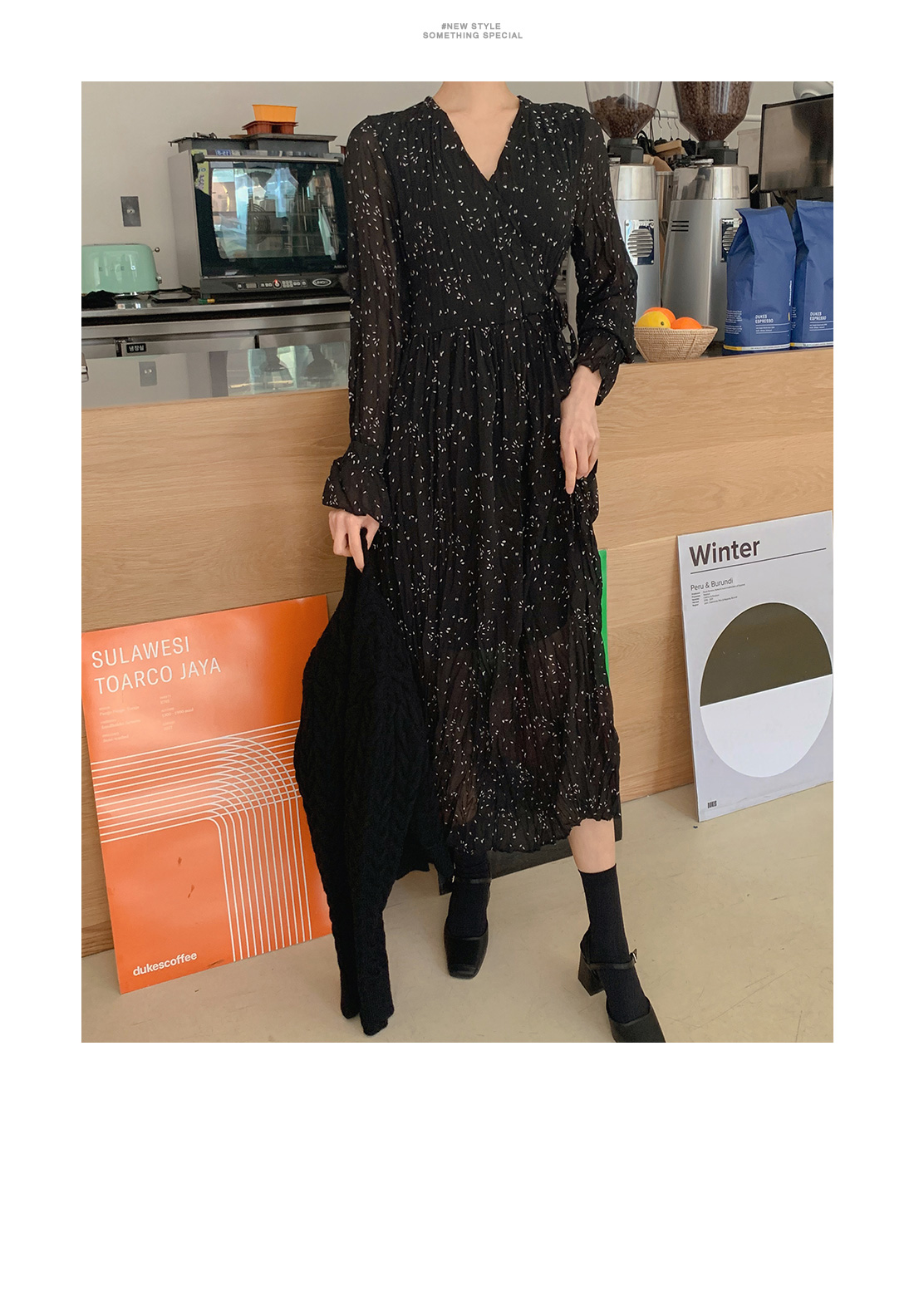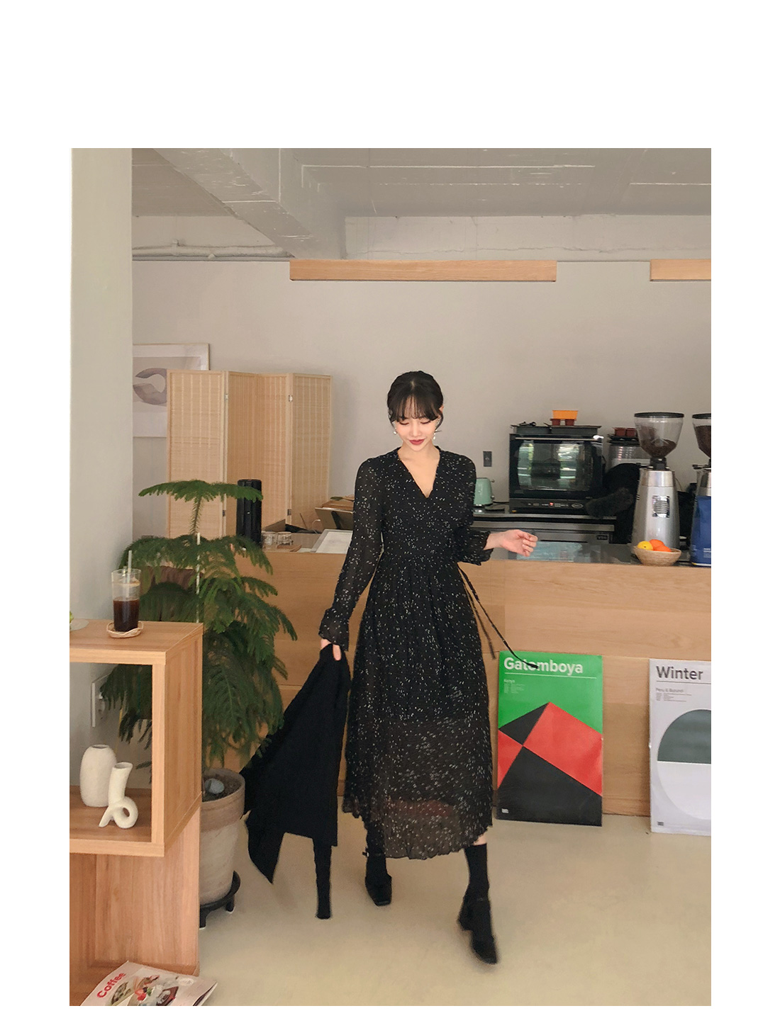 허리부분 스트랩으로 랩원피스 분위기가 느껴지면서