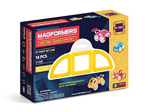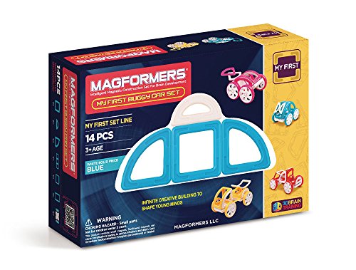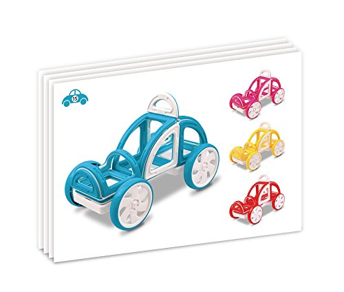Young builders can experience the fun of creating their first buggy with 6 different magnetic shapes. Available in 4 different colors, each set arrives with 16 play cards that can children can be copied to create unique roadsters, cars and trucks. Learn the names of 6 different shapes, square, sector, super rectangle, arch, half arch and half circle. When playtime is over simply, click together to stack and store.Feature