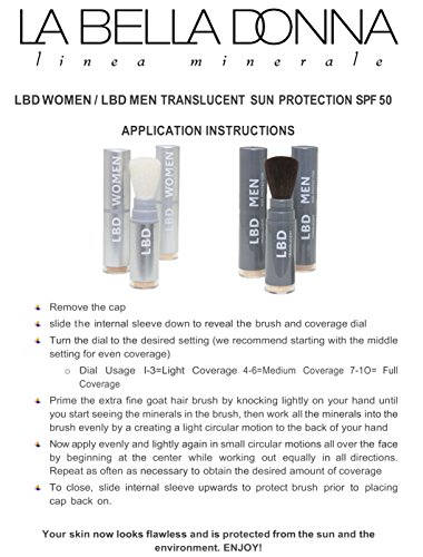 LBD-MEN SPF 50 PURE MINERAL TRANSLUCENT SUN PROTECTION GOLF, TENNIS, POOL, BEACH, VACATION? NOW YOU CAN ENJOY ALL WITHOUT THE HARMFUL EFFECTS OF THE SUN! We have taken years to create this translucent, completely naturale sun protection for Men. It is the most amazing product to protect you from the sun and the environment including when you work out, go skiing, dive in a pool,playing all outdoor sports. It has complete UVA/UVB protection which means that you are also protected from the overhead lighting that contain UVA/UVB infrared rays(fluorescent lighting)which are in most offices, public facilities. ALL NATURALE, PURE TRANSLUCENT SUN PROTECTION FOR MEN LBD-MEN is a PURE MINERAL translucent sunblock that contains only four ingredients.Feature