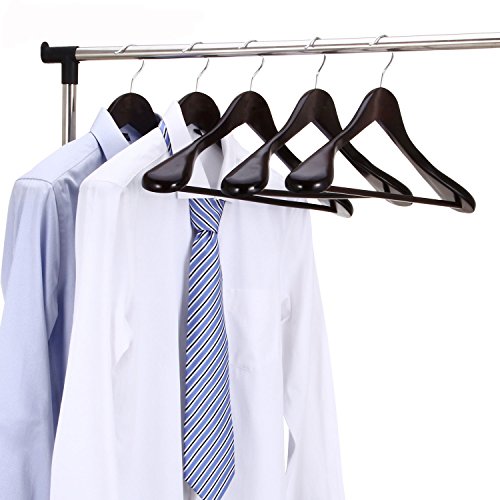 -. Feature : Features: Solid and durable. Extra-wide shoulder prevent the clothing falling down. Elegant design for hanging kinds of heavy coats, pants, skirts and so on. / Non-slip rubberized Trouser bar, holds the clothing without any crease and wrinkle. Supports and keeps jackets in shape. Slight wishbone design for better presentation of garments. Ideal for home and clothing shops. / Specification: Color: brown,wooden color Material:gugertree Item size:approx.44*6*23CM Package size:approx.35.5*35*14CM / Package Include: 5 x Extra-Wide Shoulder Suit Hangers / Note: Please allow 1-3cm error due to manual measurement and make sure you do not mind before ordering. The color of the actual items may slightly vary from the above images due to different computer screen, thanks for your understanding.
