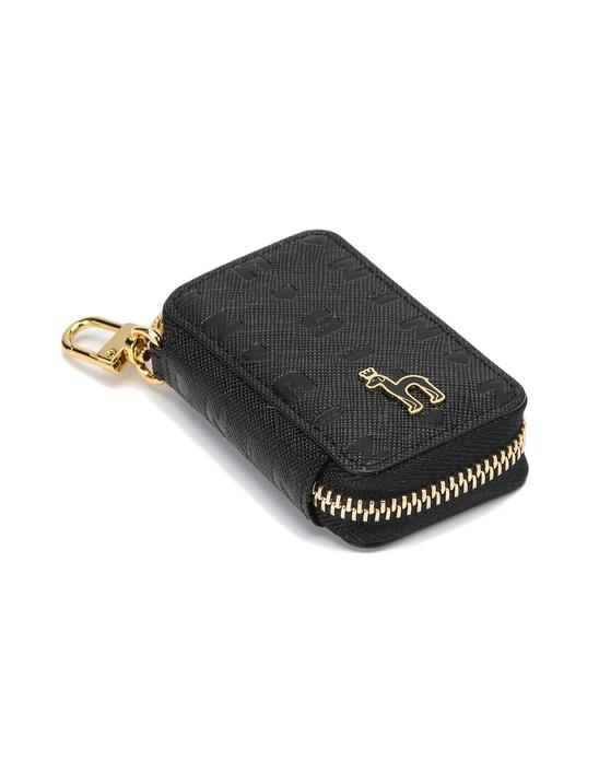 로고 모티브의 음각 패턴과 메탈 장식이 어우러져 감각적인 외관을 보여주며 내부 배색으로 세련된 느낌을 살린 키홀더입니다.