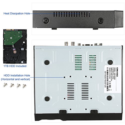 OWSOO 4CH Full 1080N(9601080) AHD DVR HVR NVR H.264 HDMI P2P Cloud Network DVR Digital Video Recorder with 3.5'' Inch 1TB HDD