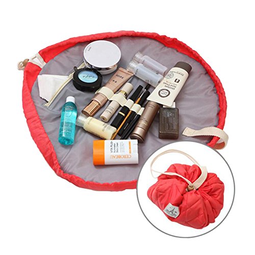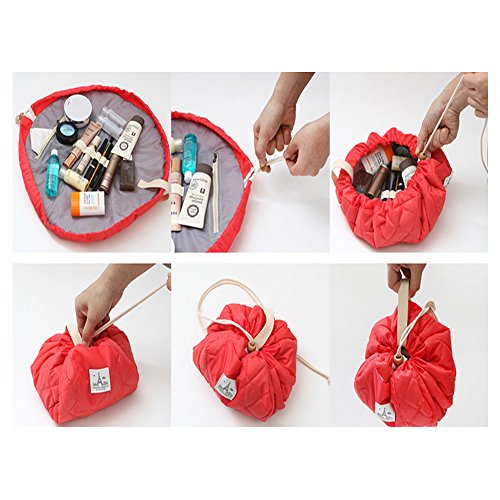 YAHUIPEIUS Drawstring Travel Makeup Brushes Bag Nylon Collapsible Cosmetics Carry Pouch (Red)