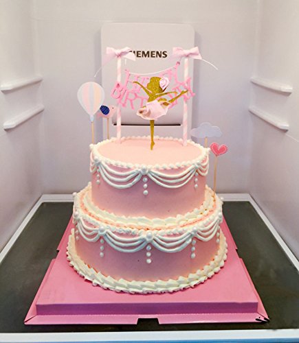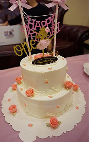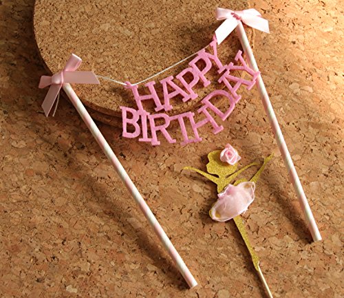 HAPPY BIRTHDAY Cake Bunting Topper with Pink Bows and Straws Gold Glitter Ballerina Cake Topper with Pink Dress Set of 2 | Birthday Party Decorations | Fast Amazon Logistics and 100% Refund Service