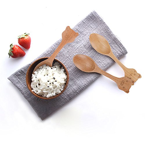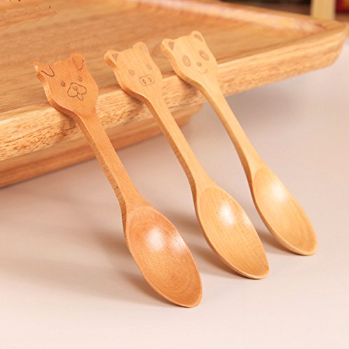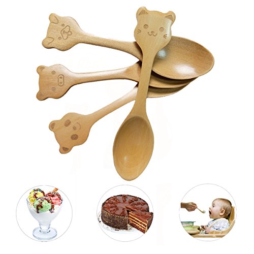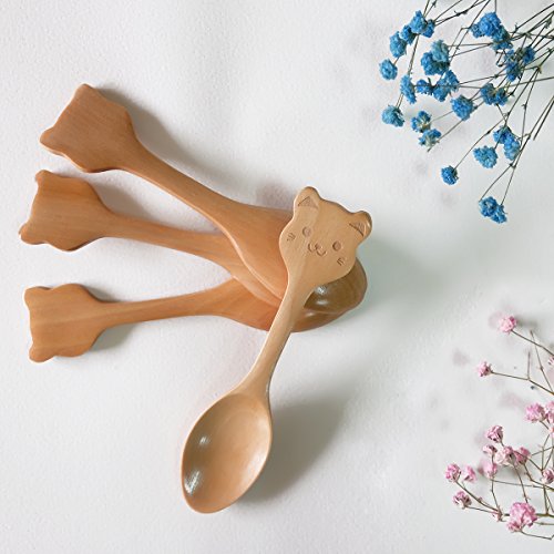 X cool Set of 4 Natural Wooden Handmade Small Spoon 4.7 Inch Cartoon Design for Children (4 Pcs)