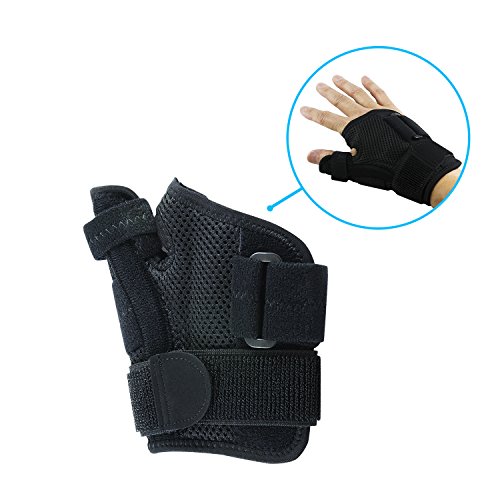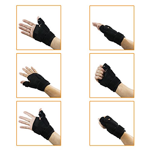 -. Feature : TWO STAYS FOR FULL COMFORT AND SUPPORT. This level-3 wrist support brace provides you with two stays: one on the palm side of the wrist and the other towards the backside of the thumb area. This gives you maximum support and comfort so aches, sprains, soft tissue damage and inflammation, and even minor fractures can heal faster while decreasing the risk of further injury. / REDUCES PAIN WITHOUT CONSTRICTING. It sports a reversible thumb stabilizer that immobilizes the thumb while allowing full-finger movement, reducing pain and inflammation in the thumb joint and ligaments so it can heal without constricting the mobility of the rest of your hand. / THREE ADJUSTABLE STRAPS TO FIT MOST WRIST SIZES. Two of the Velcro straps control the pressure on the hand and wrist. The third controls the tension at the thumb. All three straps are adjustable so the brace can be worn comfortably on wrists of several different sizes. / SUITABLE FOR EXTENDED WEAR. The breathable fabric allows the brace to be worn for extended-time use, even while you sleep, without any numbing, tingling, swelling, or excess sweat build up. It is easy to apply and to remove. It will remain firmly onto your wrist without slipping or loosening. / 90-DAY 100% MONEY BACK GUARANTEE. We offer a No Hassle 90-DAY 100% Money Back Guarantee. If, within the first ninety days, you are not completely satisfied with your purchase for any reason, just let us know and we will refund you all your money.