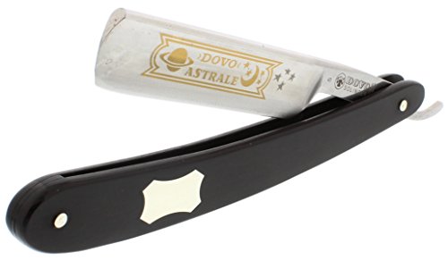 Studio : Dovo Publisher : Dovo Binding : Health and Beauty Product Description Dovo Model 558130. Black handles. Carbon steel, mirror polished blade with gold etch. 5/8" Round point. Full hollow ground. Dovo razors are known throughout the world as a top of the line product. If you're considering giving a straight razor as a gift you can not go wrong with a Dovo brand straight razor. Made in Germany. 0