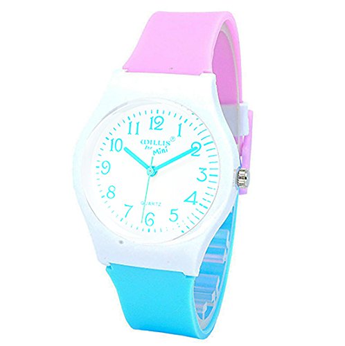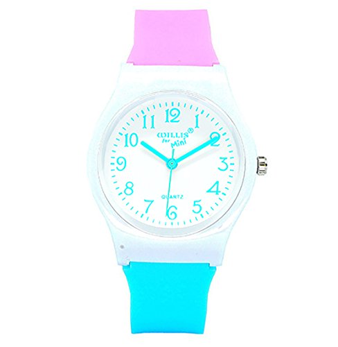 Brand, Seller, or Collection Name:Angels' Part Number:AD-DOUCOR-US Item Shape:Round Display Type:Analog Clasp:Buckle Case material:ABS Case diameter:3.50 centimeters Case Thickness:1 centimeters Band Material:PVC Band length:Children's Long Band width:1.50 centimeters Band Color:Pink Dial color:White Special features:Shock resistant Movement:Analog quartz Water resistant depth:30 Meters
